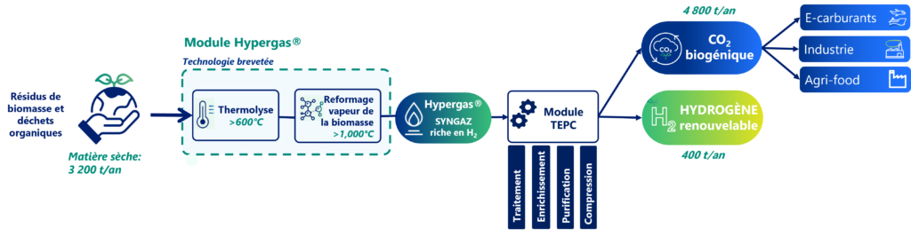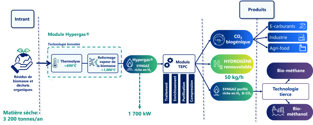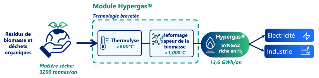La technologie fonctionne avec tous types de biomasse et tolère jusqu’à 55% d’humidité, ce qui simplifie l’approvisionnement en intrants.